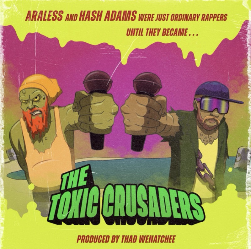 Mashing boom-bap grit with woozy lo-fi haze, The Toxic Crusaders’ self-titled debut EP finds Pacific Northwest MCs Araless and Hash Adams stepping into a comic book dystopia inspired by the cult 90s cartoon they’re named after. Samples from the series are spliced through Thad Wenatchee’s breezy, bouncy, and occasionally warped production. Tongue-twisting bars are exchanged cipher-style, while Araless showcases his knack for effortlessly soulful hooks. A playful throwback offering some mutated nostalgia.